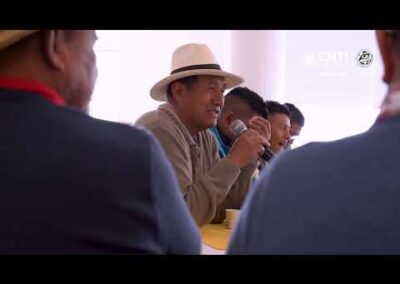 Continuamos desarrollando la sexta sesión de la Comisión Nacional de Territorios Indígenas (CNTI) entre el Gobierno Indígena y el Gobierno Nacional, donde se están abordando una serie de temas contemplados para la agenda de los tres días de los espacios de diálogo y concertación entre los espacios autónomos y mixtos. En un primer momento, se dio una mesa ampliada de gobierno a gobierno con la presentación del avance de la implementación del Artículo 55 del Decreto Ley 902 de 2017, el cual hace referencia a la implementación de Mecanismos Alternativos de Solución de Conflictos y a la no expedición de normas reglamentarias en esa materia.